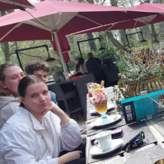 Hier wurde beobachtet, analysiert, diskutiert. Fazit: Die Eisbecher sind bombastisch, die Limo schmeckt, Tische frühlingshaft aber leider wenig österlich, freundliches, kompetentes und auch junges Servicepersonal. Natürlich gab es auch Kritik. Aber im Großen und Ganzen haben sich die Azubis wohlgefühlt.